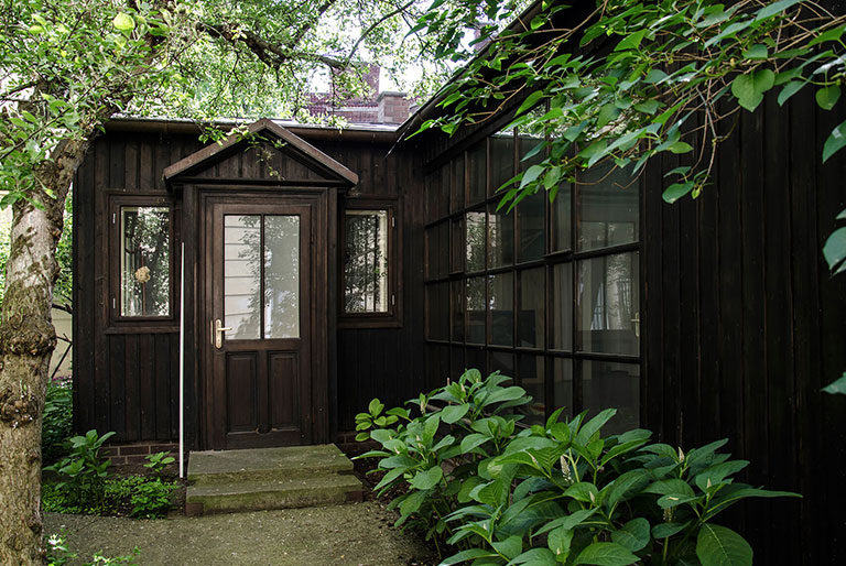 Ateliér Josefa Sudka se nachází ve vnitrobloku na pražském Újezdě, a tak zůstává většině kolemjdoucích skryt. Dřevěný, původně zahradní pavilon z 19. století je prostorem, kterým prostupuje přirozené světlo z velkých prosklených tabulí. Je obrostlý zelení, za jedním oknem vidíte tolikrát na fotografiích zachycený pokroucený strom.