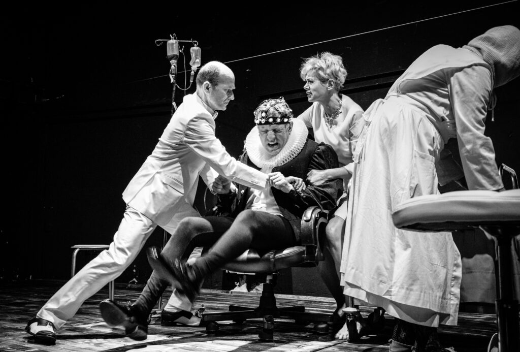 Fotografie vznikla v roce 2022 na jevišti Činoherního klubu při zkoušení inscenace Macbeth v režii Ondřeje Sokola. Pro mě se v této fotografii spojuje atmosféra, akce i souhra výrazů jednotlivých herců. Snad takto působí i na diváka.