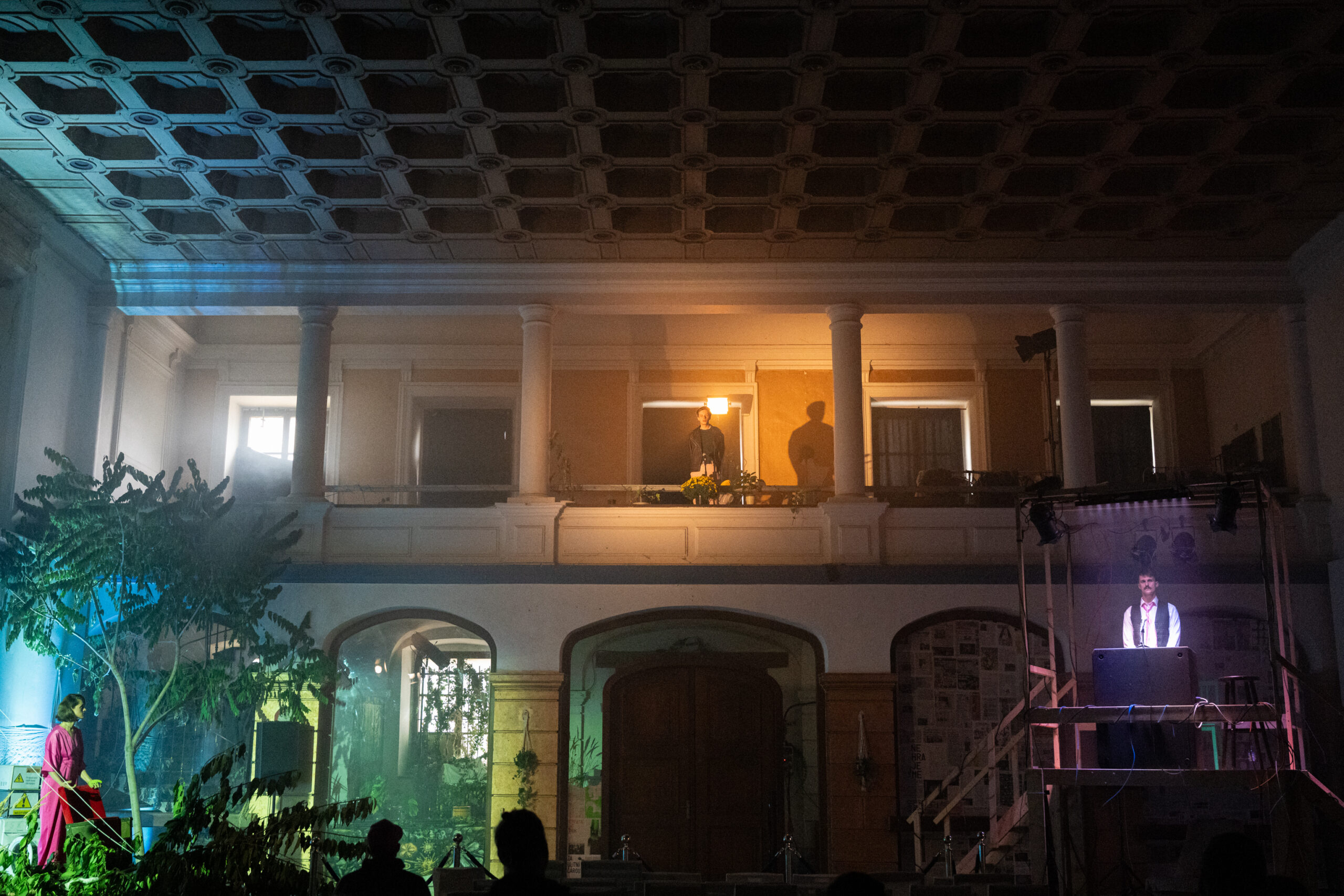 Měla jsem jasnou vizi: svět pohlcený zelení, invaze přírody, souboj lidského s tím, co si roste, kam chce. Plán tedy zněl jasně – do Jízdárny Savarin nanosíme hlínu, břečťan, kameny a stromy. Velké náplavové stromy. Opravdu velké náplavové stromy, kterým tak dáme druhý život. A vedle toho postavíme a nataháme hromady kabelů a hadic.
