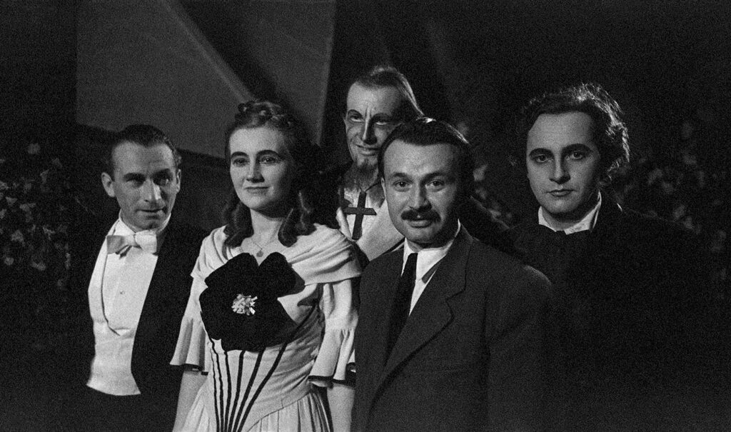 Ka­rel An­čerl, Alfréd Ra­dok a her­ci z in­sce­na­ce Ho­f­f­man­no­vy po­víd­ky (Ope­ra 5. květ­na, 1946) FO­TO: VÁC­LAV CHO­CHO­LA (© Ar­chiv B&M Cho­cho­la)
